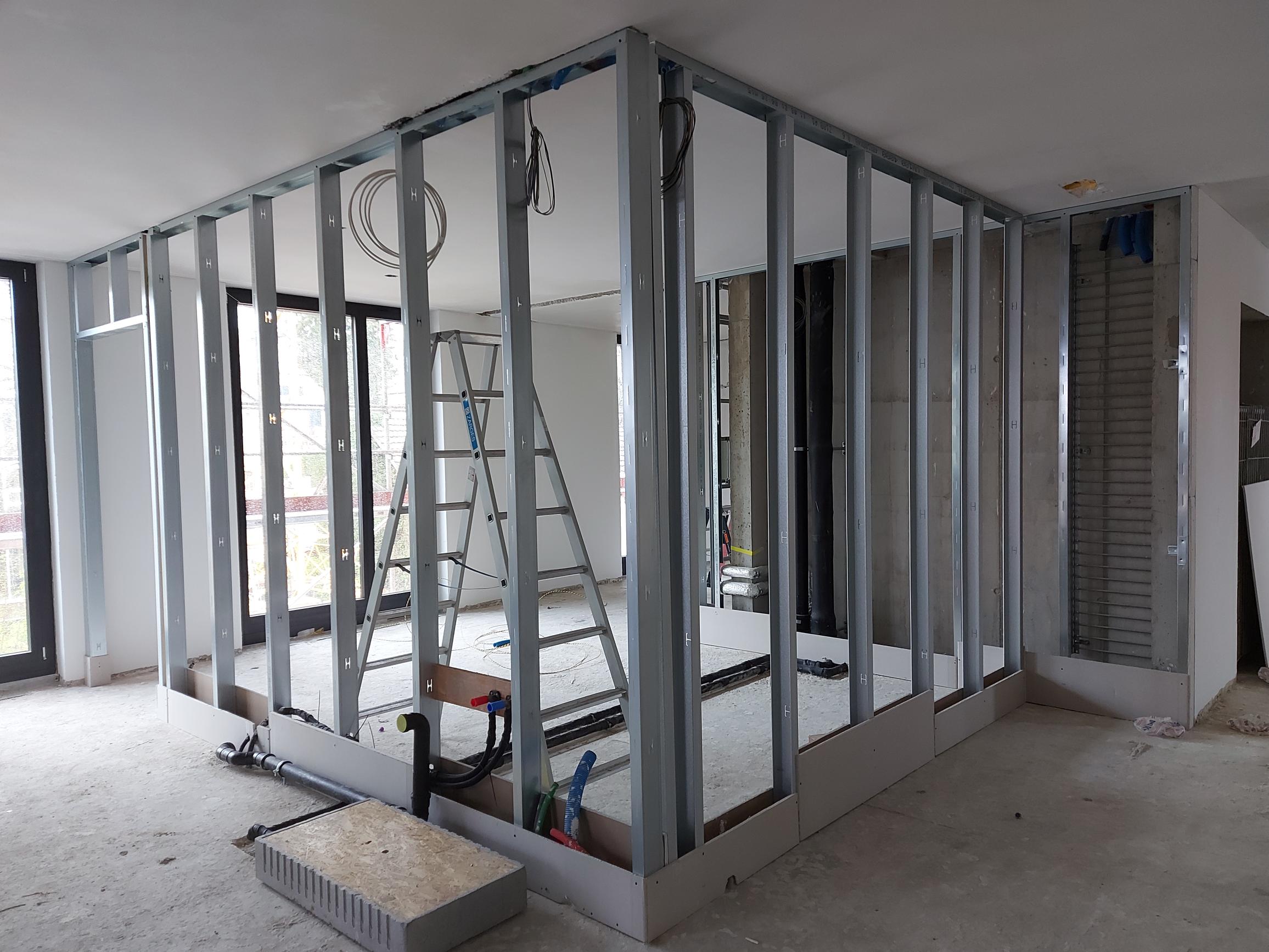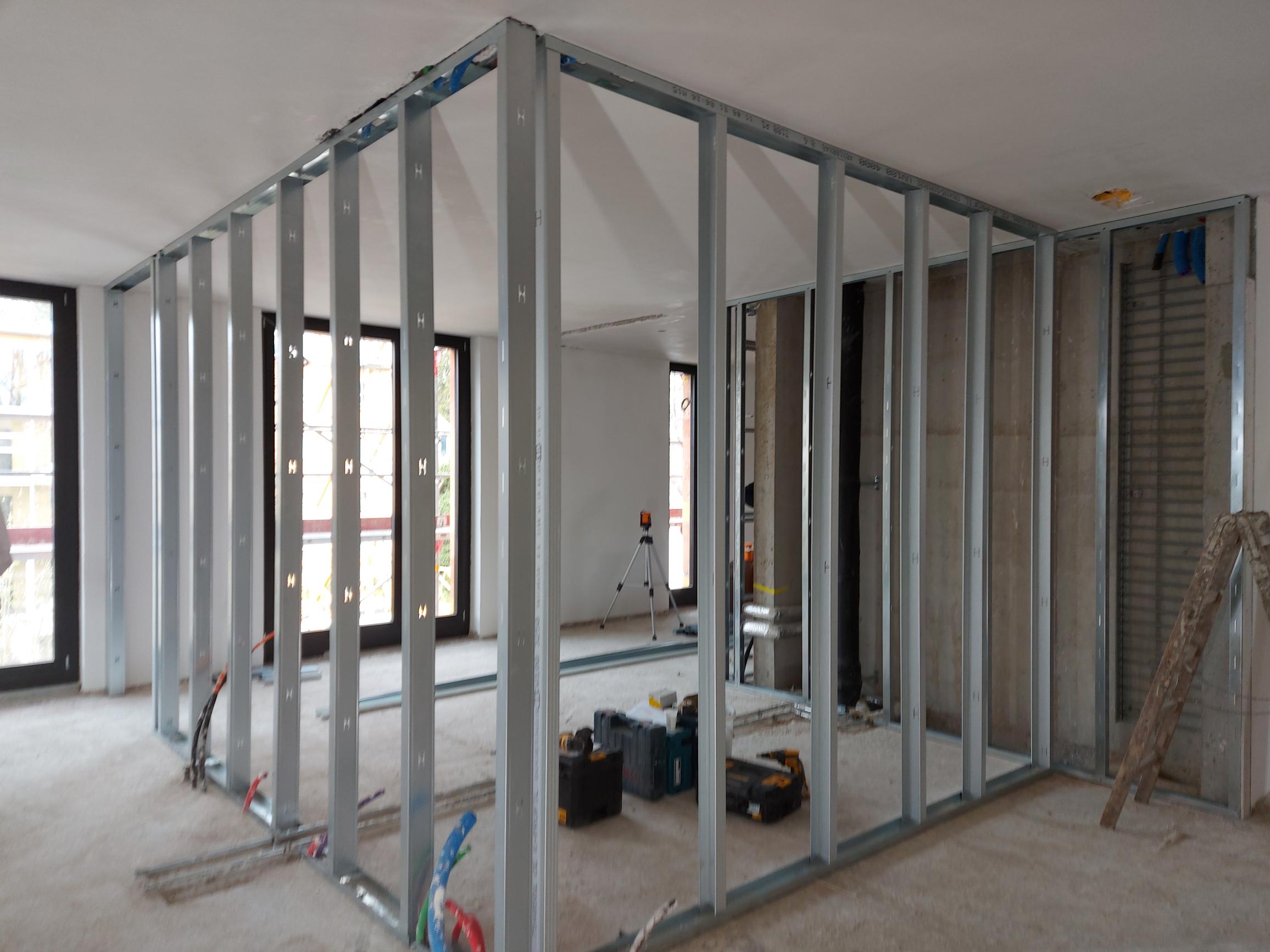Es handelt sich um eine Bauweise, bei der Wände, Decken und andere Strukturelemente aus vorgefertigten Bauteilen wie Gipskartonplatten, Metallprofilen und Dämmmaterialien erstellt werden. Der größte Vorteil des Trockenbaus ist die Flexibilität und Schnelligkeit der Installation im Vergleich zu traditionellen Bautechniken.